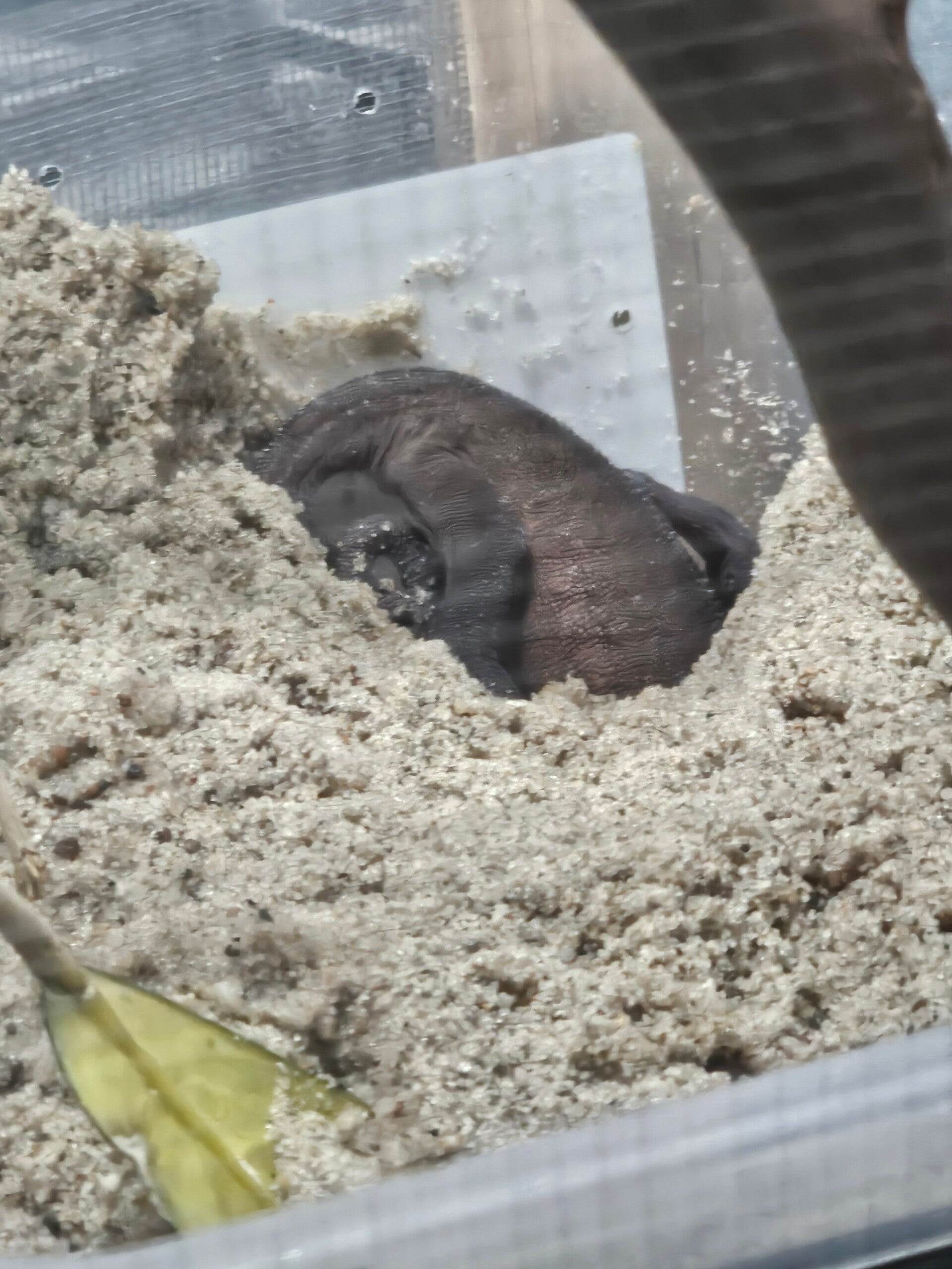 Po około 4 tygodniach od udanej kopulacji samica zaczyna robić się niespokojna. Intensywnie porusza się po terrarium szukając odpowiedniego miejsca na złożenie jajek. Ważne, aby w tym czasie udostępnić samicy pojemnik wypełniony np. mokrym piaskiem przeznaczonym do piaskownicy, który z powodzeniem stosujemy w swojej hodowli. Samica zawsze kopie do momentu wyczucia stabilnego podłoża, czyli do dna pojemnika, dlatego nie należy przesadzić z ilością piasku, wystarczy ok 15 cm warstwy, aby mogła bezpiecznie i bez nadmiernego wysiłku złożyć i później zakopać jajka. Po wszystkim samica wraca na gałęzie, od tego momentu przez ok 2 tygodnie należy szczególnie zadbać o codzienne karmienie oraz suplementację, aby mogła wrócić do pełni sił.