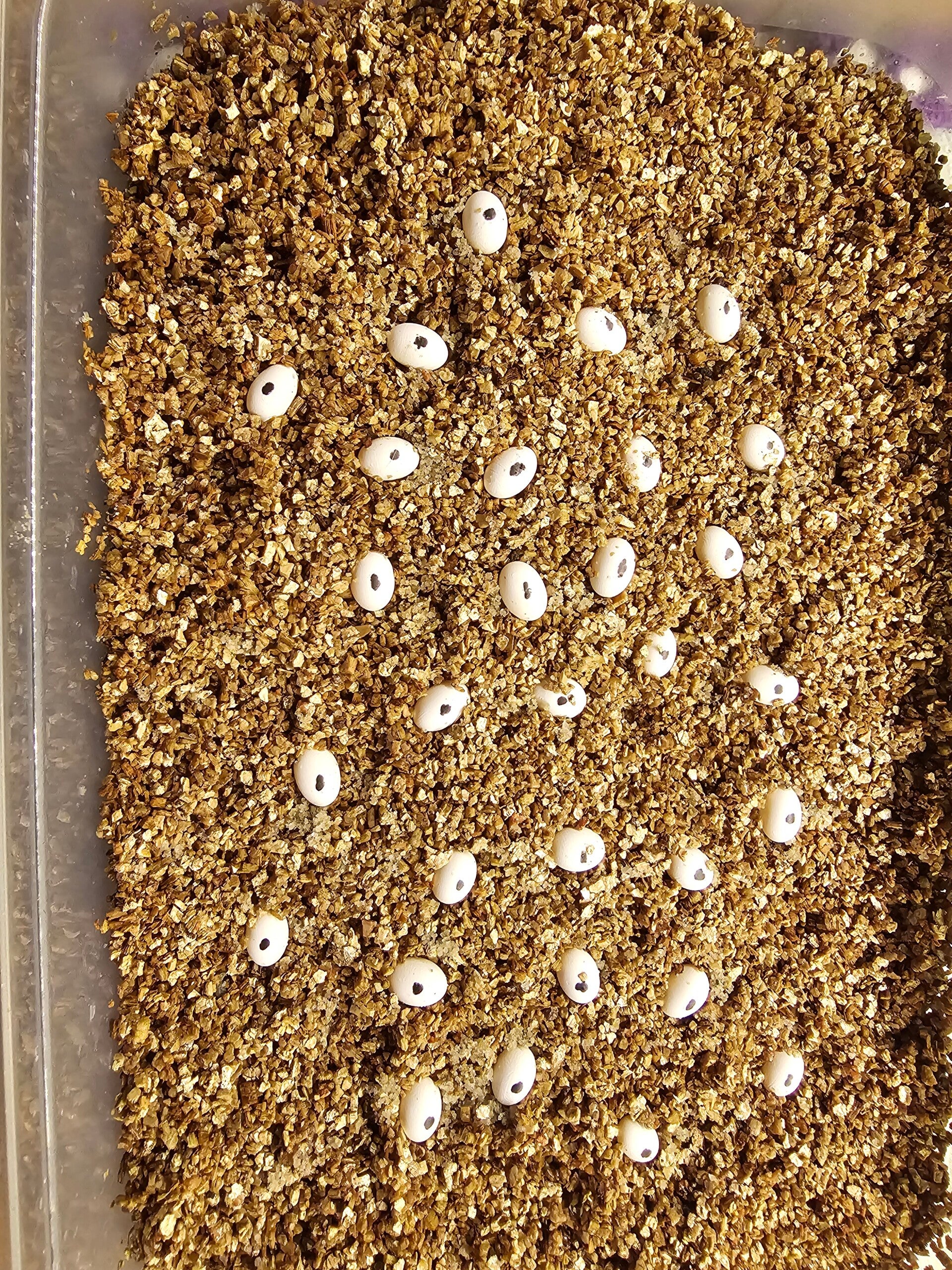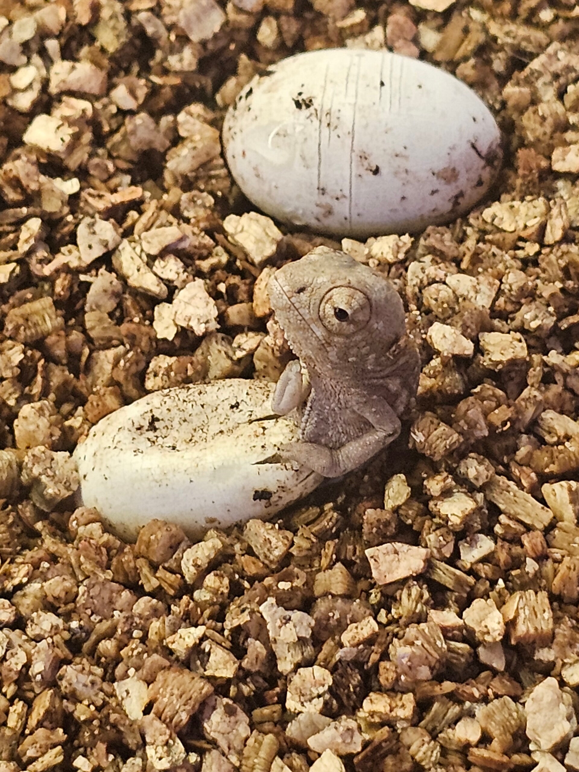 Inkubacja jajek kameleonów to sztuka wymagająca odpowiedniej temperatury, wilgotności oraz dużo cierpliwości. Czas inkubacji jaj kameleonów lamparcich wynosi od 6 do nawet 12 miesięcy. Jajka umieszczamy w szczelnie zamkniętym pojemniku, w wilgotnym podłożu zwanym wermikulitem.